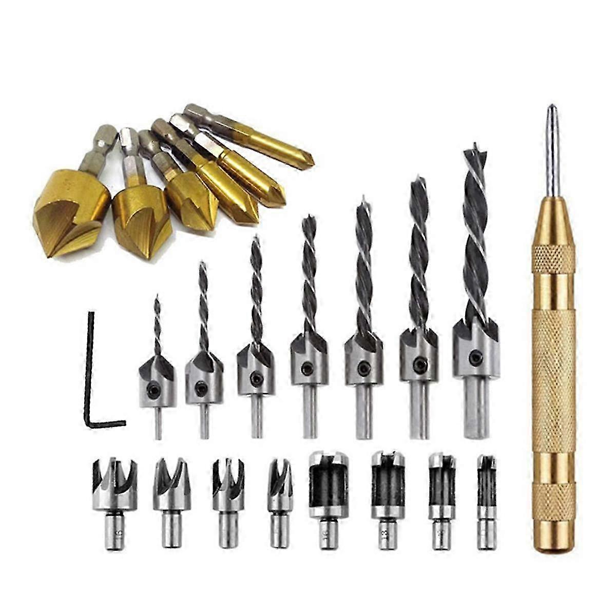 23Pcs Center Punching Three-Point Woodworking Drill Wood Plug Cutter Hexagonal Handle Five-Edge C