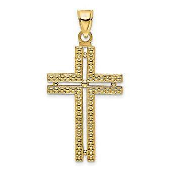 23.75mm 14k Solid Yellow Gold Polished Beaded Religious Faith Cross Pendant Necklace-Pendant for Women
