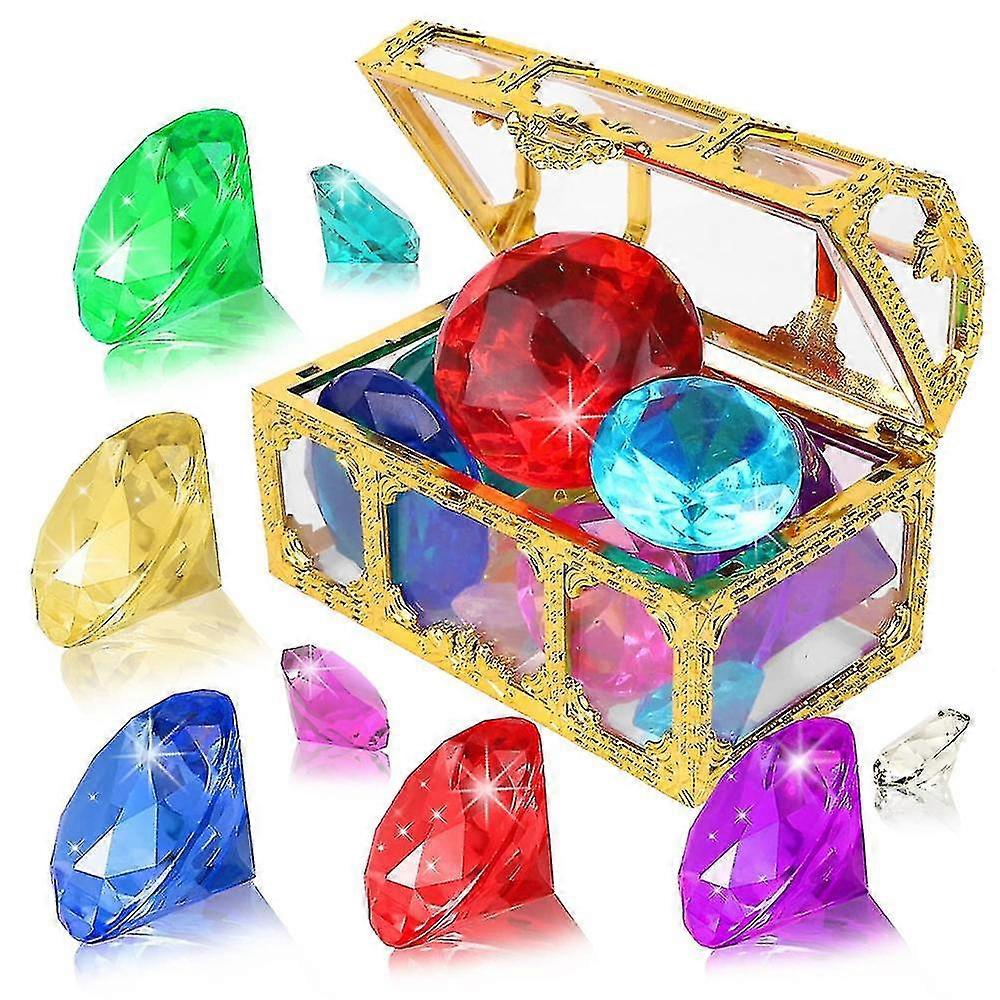 24 Pieces Colorful Diving Gem Pool Toys Big Diamond Ocean Animals Gem With Treasure Pirate Chest Box Summer Underwater Acrylic Gemstones Set For Kids