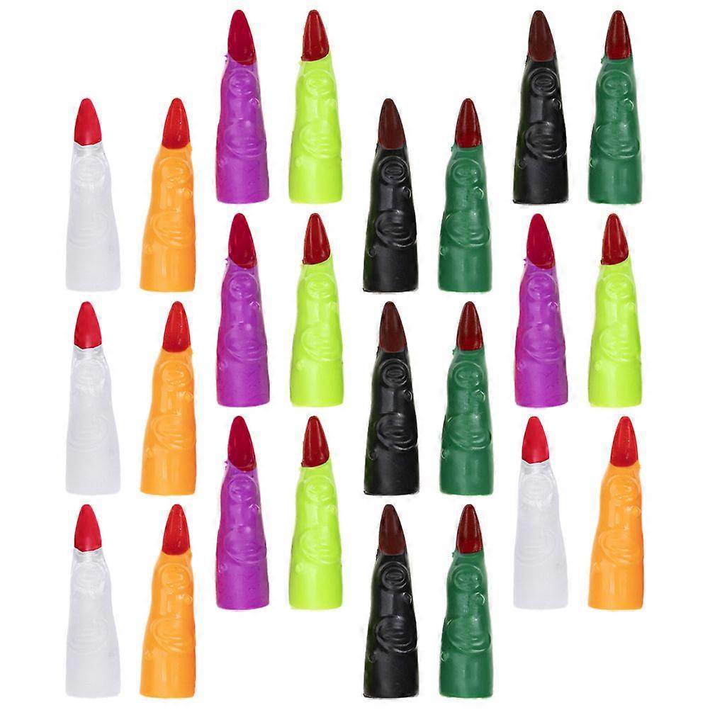 24pcs Colorful Witch Fingers Prank Fake Fingers Halloween Costume Scary Party Props Cosplay Nail Covers Funny Witch Accessories