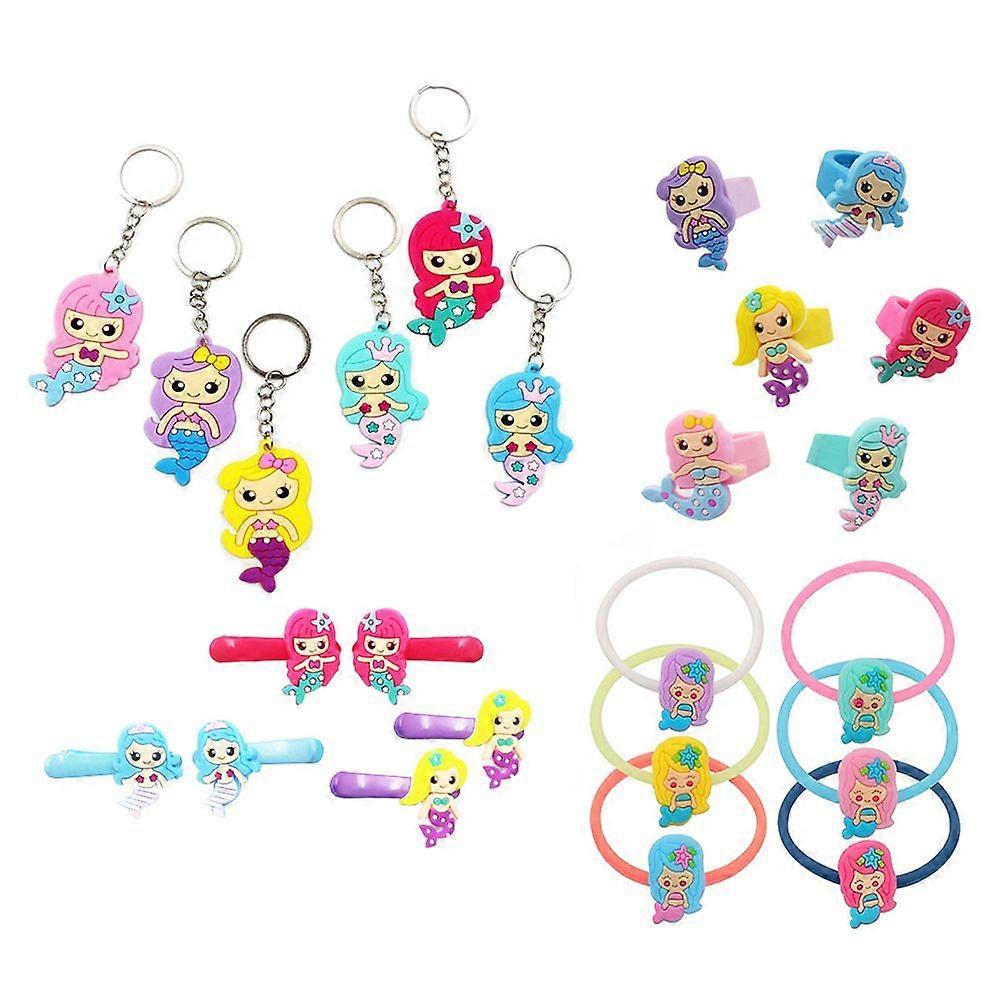 24PCS Creative Mermaid Design Children's Toys Rings Hair Key Rings Bracelets Pretend Toys Jewelry for Kids Girls