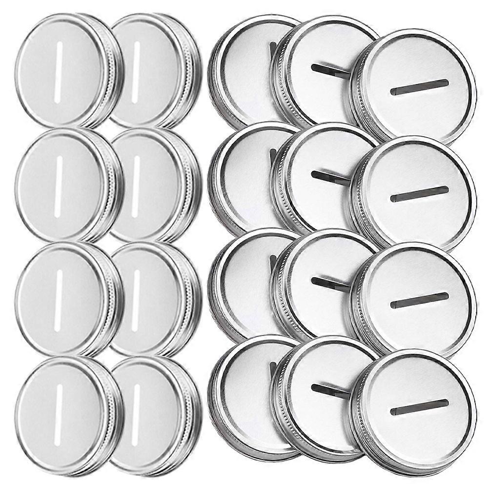 The piggy bank mason jar lid is a practical accessory for piggy bank. Its regular mouth design fits most standard jars, and the metal material assures longevity. The slot is designed for easy use, making it simple to drop in coins. This lid is perfect for home use, office desks, or as a unique sturdy idea. Features - Color: Silver -Material:Tinplate - Size: 7.30X7.30X1.50cm/2.87X2.87X0.59in -Slot: 3.6 cm -Standard fit: compatible with regular mouth mason jars, this lid assures a tight and secure fit for various savings jar applications -Practical material: made from premium tinplate, the lid is sturdy, and designed to endure everyday use -Efficient slot: the slot is perfectly sized for coins, allowing easy and organized savings without the need for additional tools -Ergonomic grip: the textured surface enhances grip, making it easy to open and close the lid with minimal effort -Multipurpose use: ideal for piggy banks, decorative storage jars, or creative diy projects for home organization and savings Package list: 24 x piggy bank covers