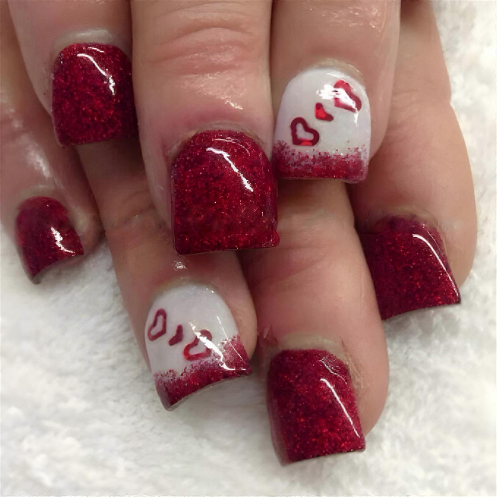 24 Pcs Heart Acrylic Nail Valentines Day False Nail French Tip Stick on Nail Short Press On Nail for Holiday