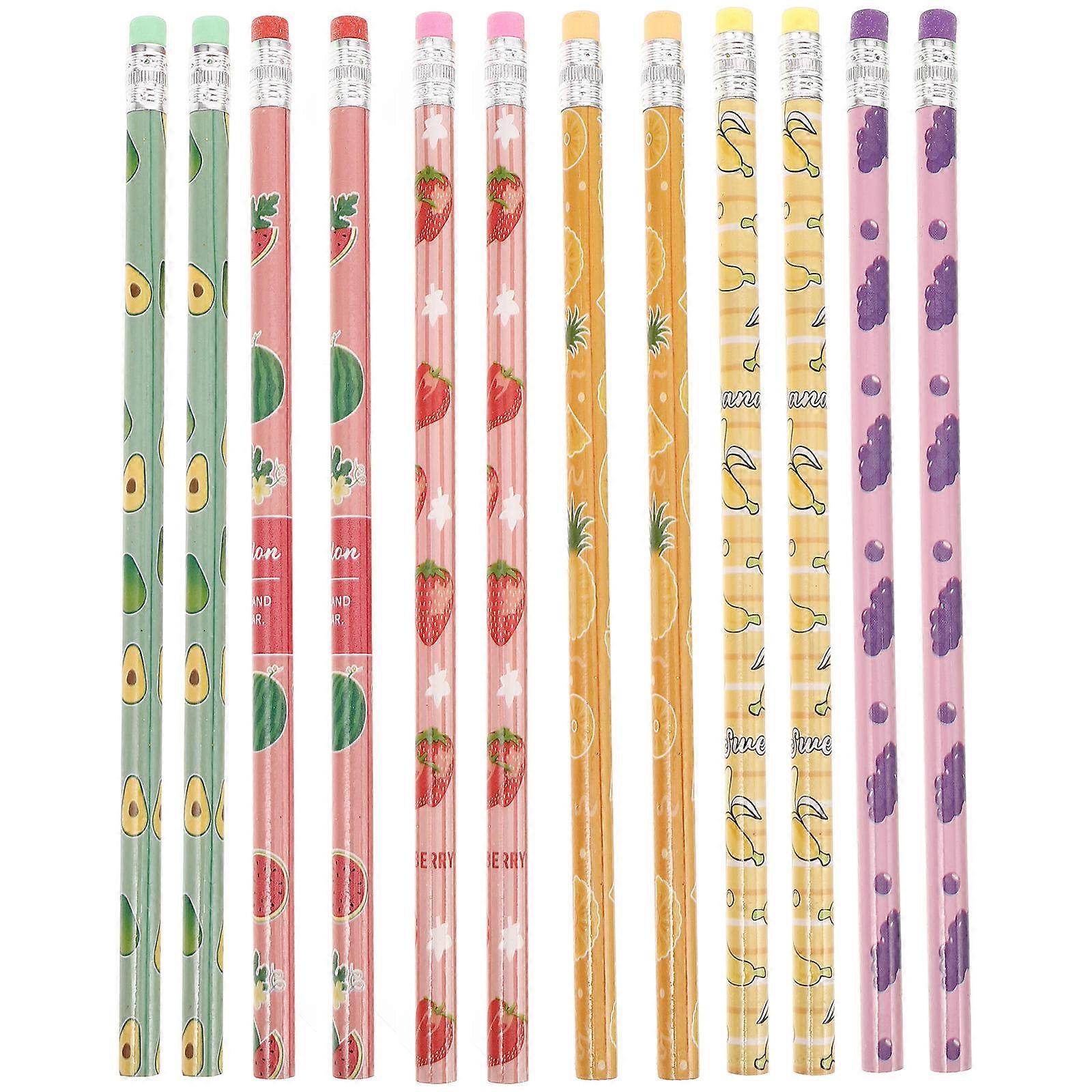 24pcs Fun Fruit Pencils with Erasers Cute Cartoon Stationery for School, Drawing, and Student Rewards