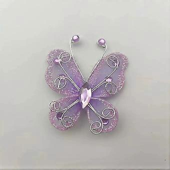 24pcs Purple Organza Wire Butterfly: Glitter Butterfly With Rhinestone - Sheer Mesh Wire Decorations - For Home Wedding Decoration