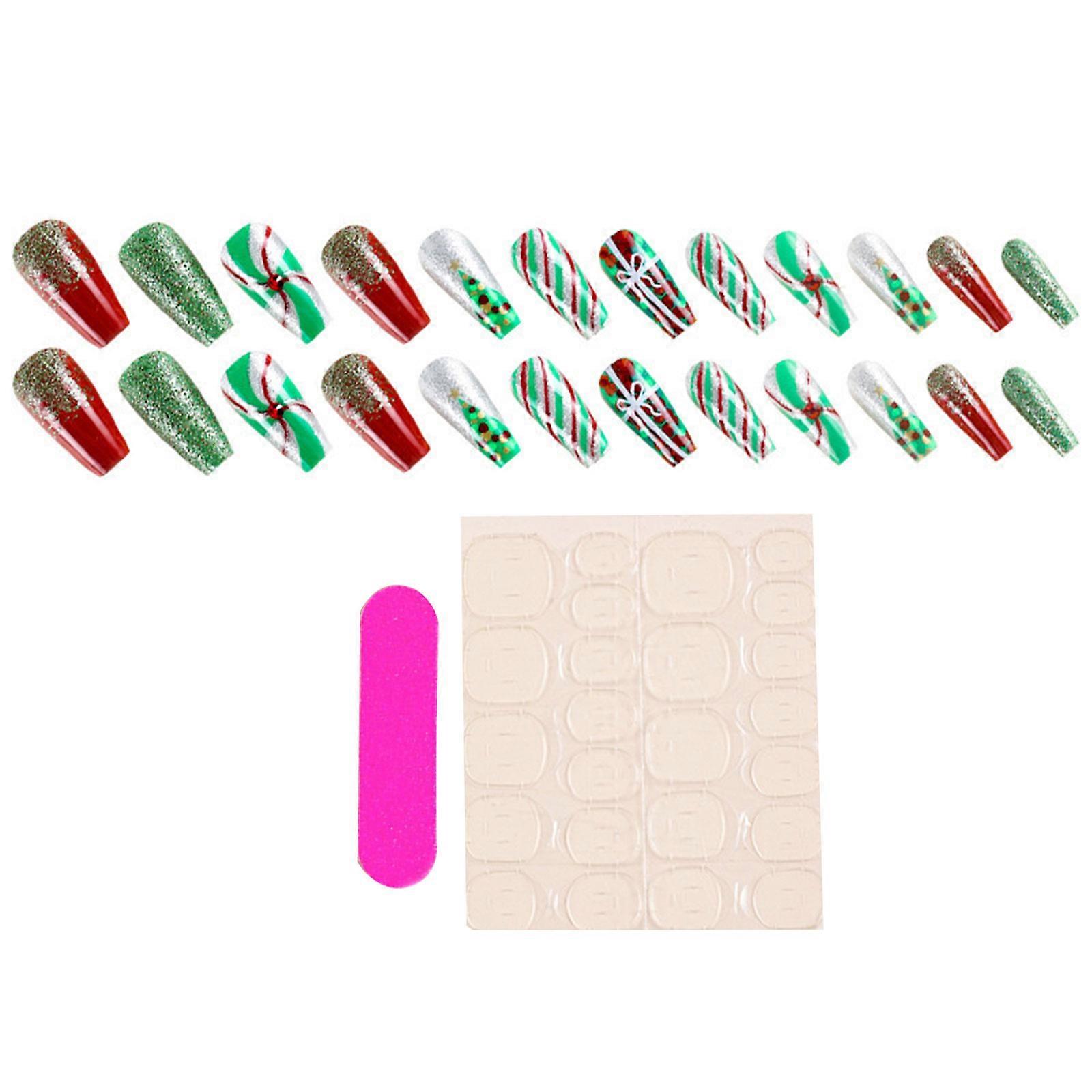 Christmas Artificial Nail 24pcs With Jelly Glues And Nail File NonToxic ABS Press On Nail For Holiday And Home Use Multicolor