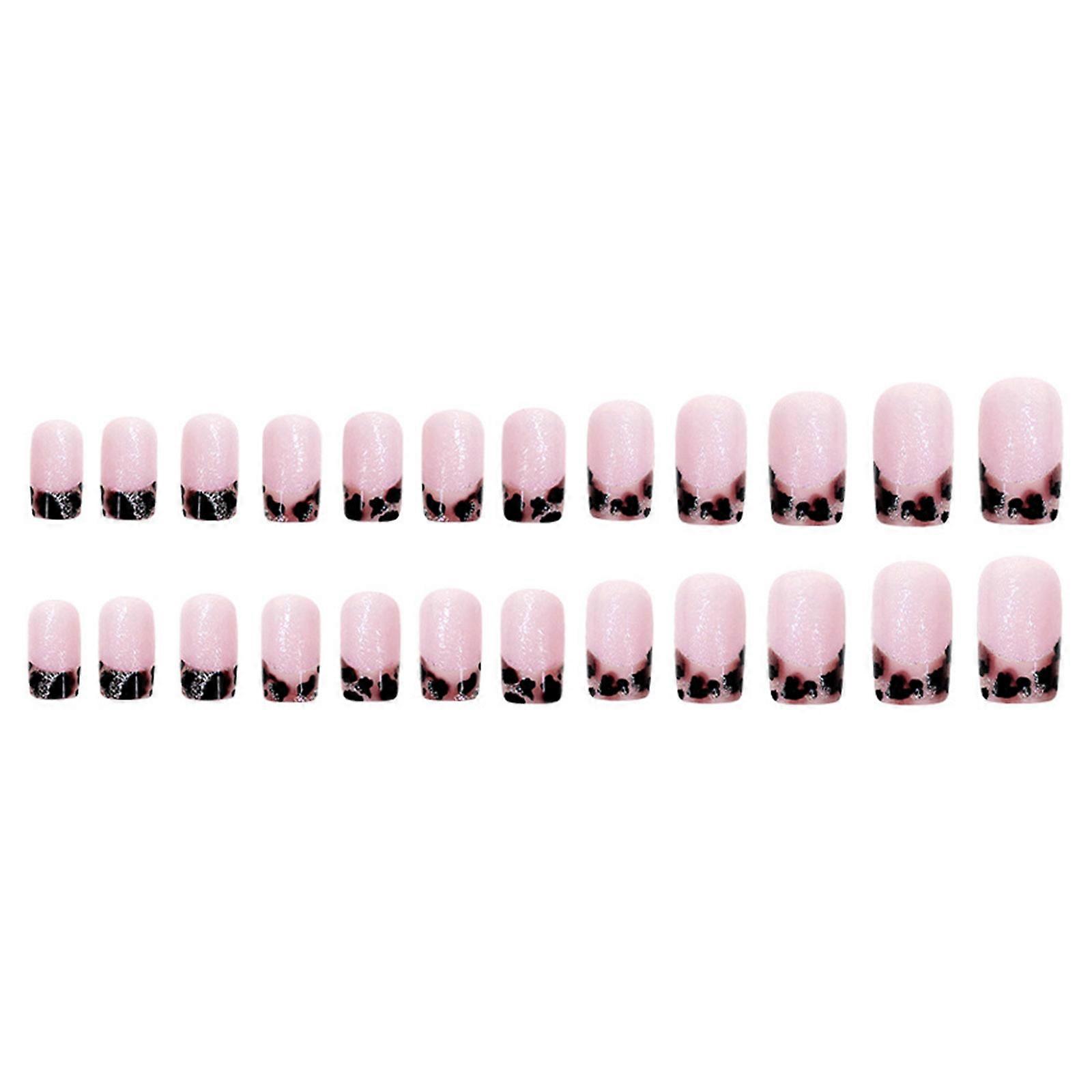 24 Pieces Leopard Print Medium Square Press On Nail Glossy French Tip Full Cover False Nail Stick on Nail Accessories Multicolor