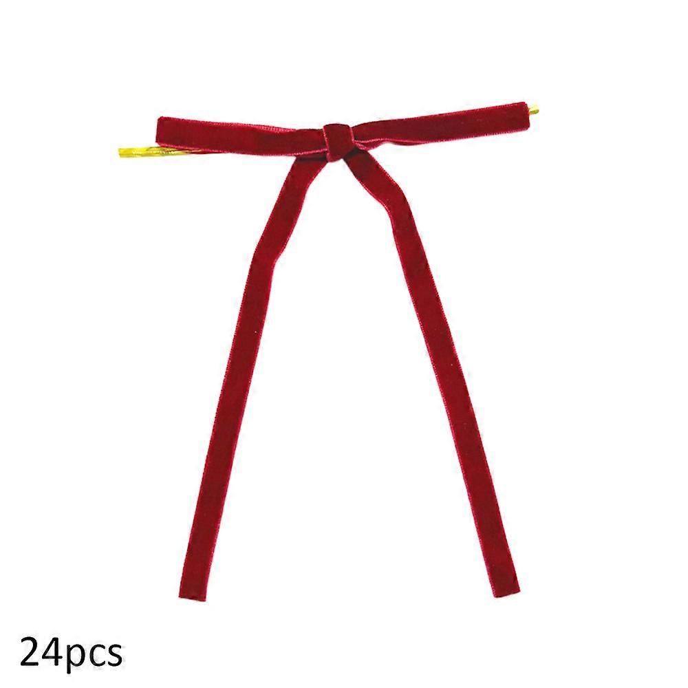 24Pcs Velvet Bows Ornaments for Christmas Tree, Rustic Crafts Gift Burgundy Velvet Ribbon for Xmas Wedding Home Decor