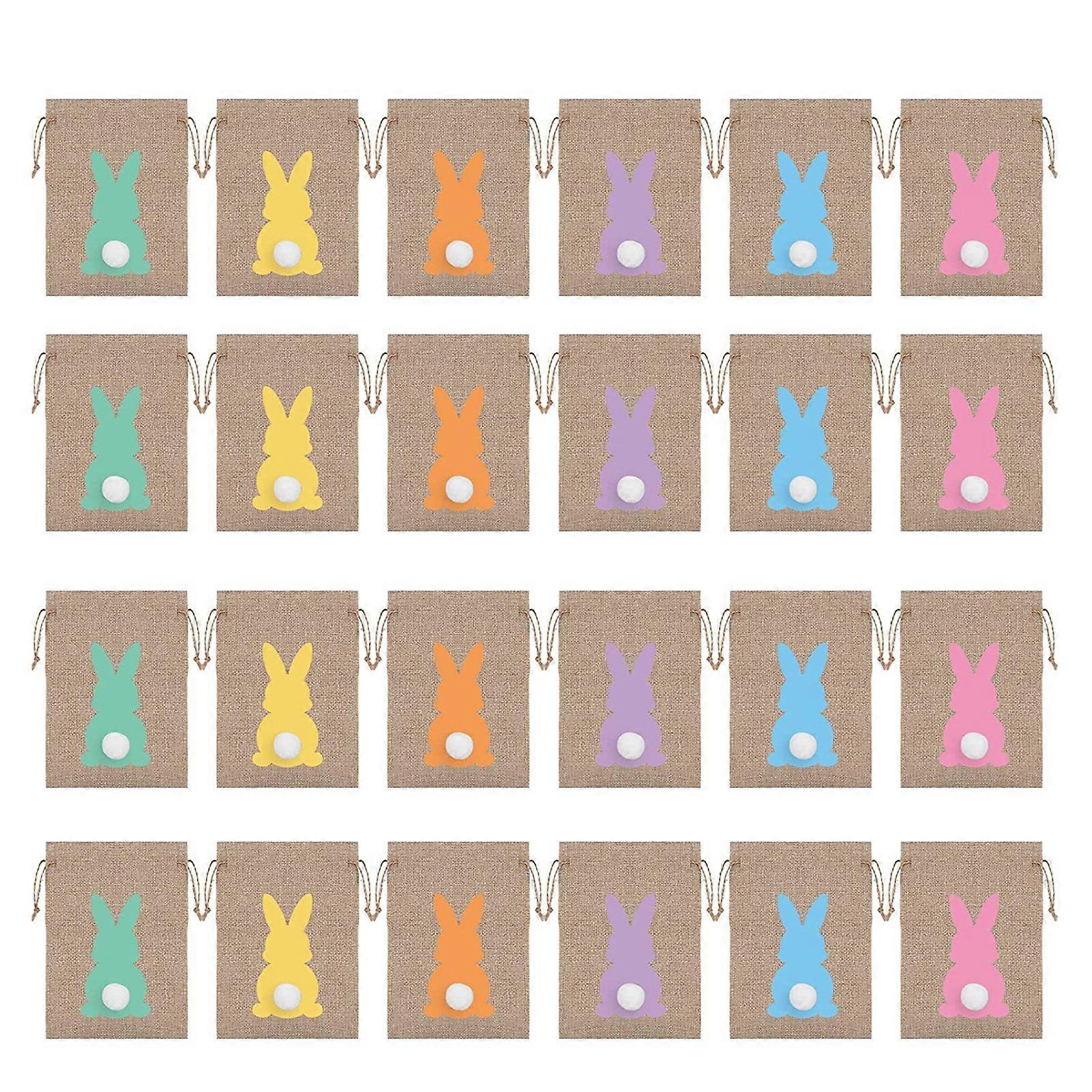 24Pcs Easter Candy Bags Unique Pattern Large Capacity Wear Resistant Non-Fading Mini Tail Design Linen Easter Rabbit Chocolate Candy Gift Storage Bags