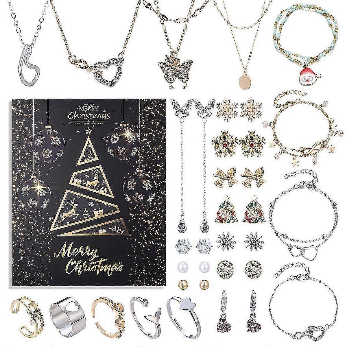 24 Grid Christmas Advent Calendar Blind Box Diy Fashion Ear Stud And Ring Bracelet Necklace Gift Set Women