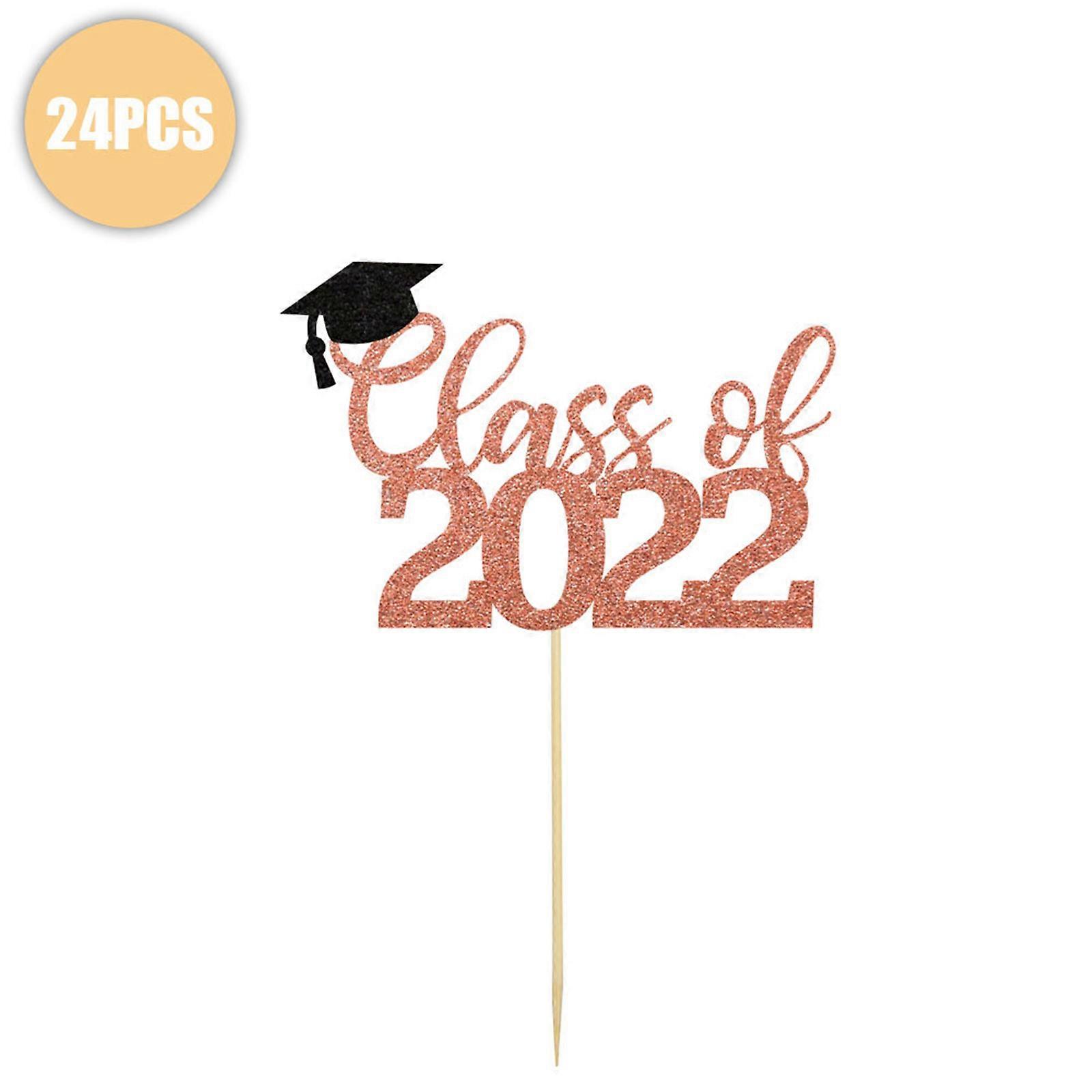 24Pcs Glitter Class of 2022 Cake Topper with Toothpicks and Glue Cupcake Picks Graduation Theme Party Celebration Decor