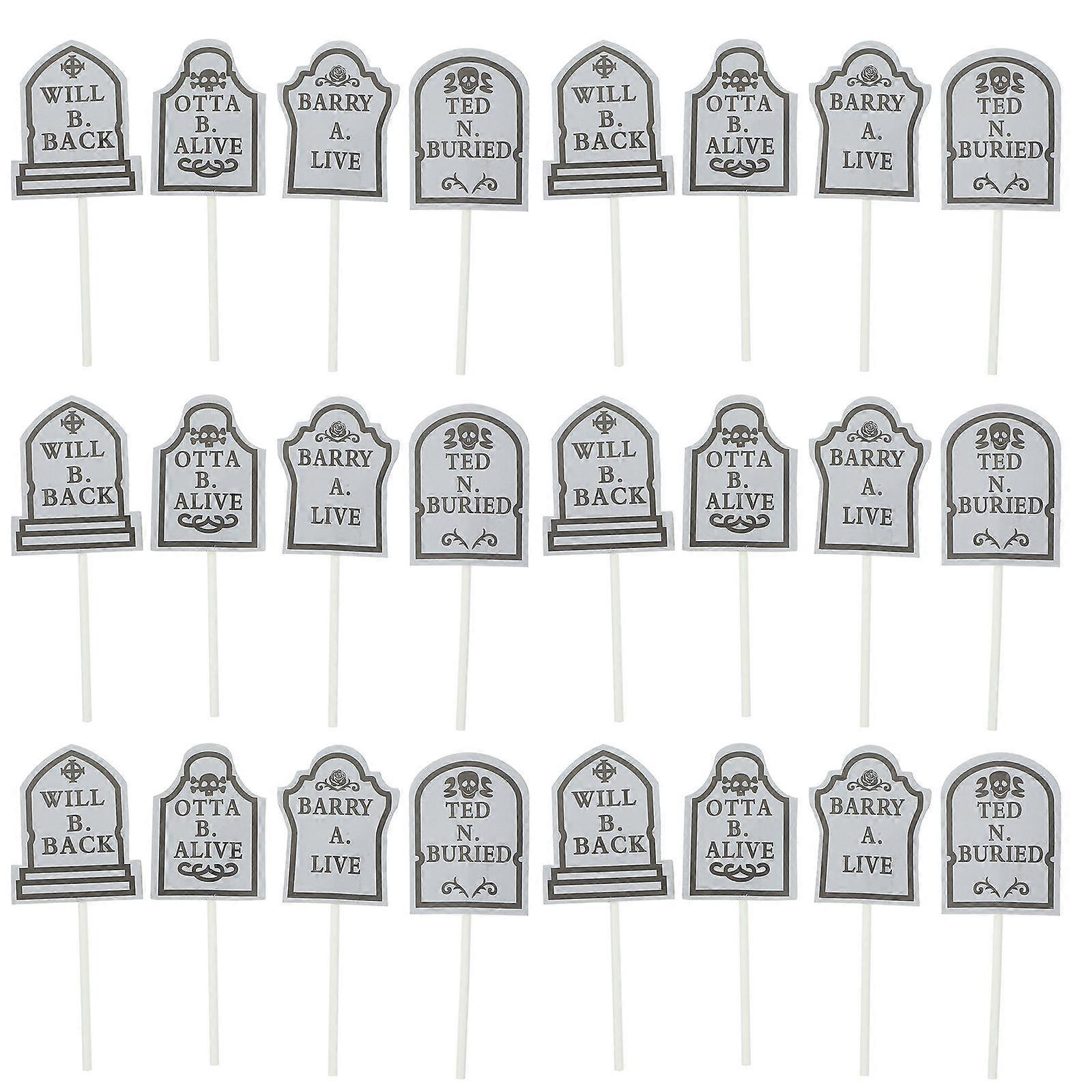 24 Pcs Cake Toppers Tombstone Pattern Christmas Cupcake Toppers Picks Horrible Party Cake Decorating Toothpicks (4 Patterns)