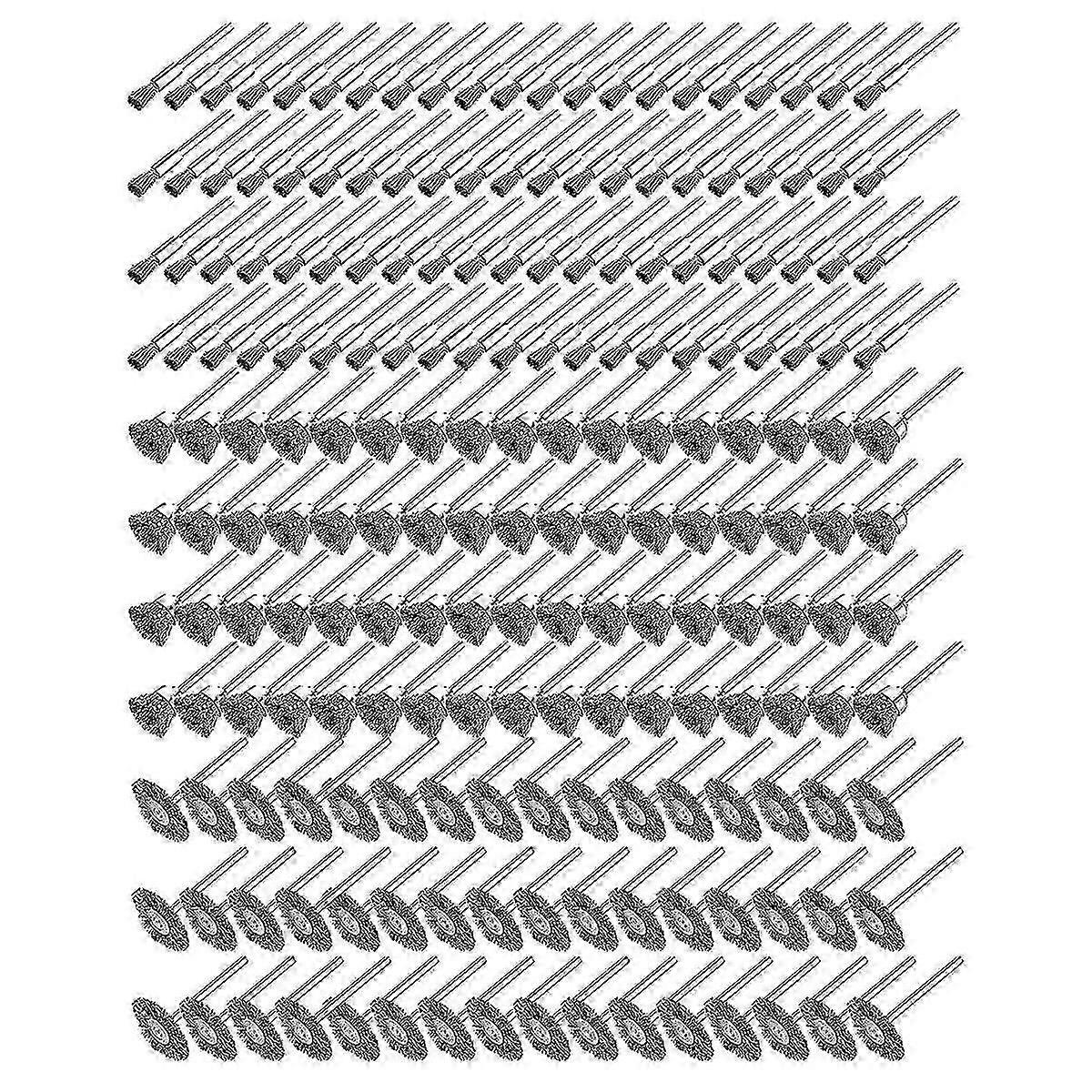 Abundant and 3 Styles: you will receive 240 pcs wire brushes sets, including 80 pieces of cup shape wire brushes, 80 pieces of pen shape wire brushes, 80 pieces of wheel shape wire brushes; Sufficient and various styles can be applied for heavy duty cleaning metal surfaces and preparation workQuality Material: wire brush drill attachments are made of quality steel wire, which is tough and sturdy, hard to fade, rust, break, deform, removing rust and dirt efficiently, serving you for a long timeDifferent Sizes: wheel brushes measure about 25 x 3 x 40 mm/ 0.98 x 0.12 x 1.6 inches, pen shape wire brushes measure about 5 x 3 x 50 mm/ 0.2 x 0.12 x 1.97 inches, cup shape wire brushes measure about 15 x 3 x 47 mm/ 0.6 x 0.12 x 1.85 inches; Different sizes of steel brushes for drill can be applied more effectively to different areas of cleaning, such as interior, side, wide space, narrow space and enclosed areasWidely Applied: drill wire brush set can remove rust, paint, limescale, burrs, light to heavy metal surfaces, such as hand drills, drill presses, and 1/8inch collet front mirror tools; Practical tools can improve work efficiencyWarm Notice: be to wear protective gear working with steel wire brushes for safety, you can wear goggles, masks, protective gloves, protective clothing and others; When working with a wire brush, it is recommended not to run at more than 10, 000 RPM, which will works better at a lower speedColour:SilverMaterial:steelSize:wheel brushes:about 25 x 3 x 40 mm/0.98 x 0.12 x 1.6 inchespen shape wire brushes:about 5 x 3 x 50 mm/0.2 x 0.12 x 1.97 inchescup shape wire brushes:about 15 x 3 x 47 mm/0.6 x 0.12 x 1.85 inchesPackage Contents:240 * Wire BrushOnly the above package content, other products are not included.Note: Light reflection and different displays may cause the color of the item in the picture a little different from the real thing. The measurement allowed error is +/- 1-3cm.