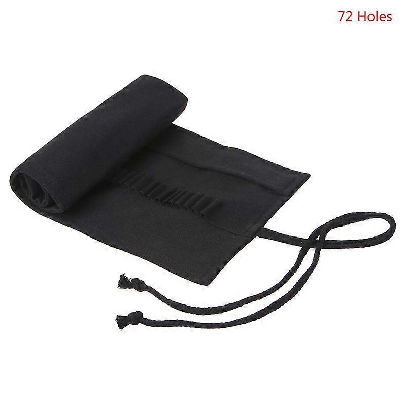 Black Color School Pencil Case Roller 12/24/36/48/72 Holes Canvas Roll Up Makeup Canvas Pen Bag For Girls Boys Stationery