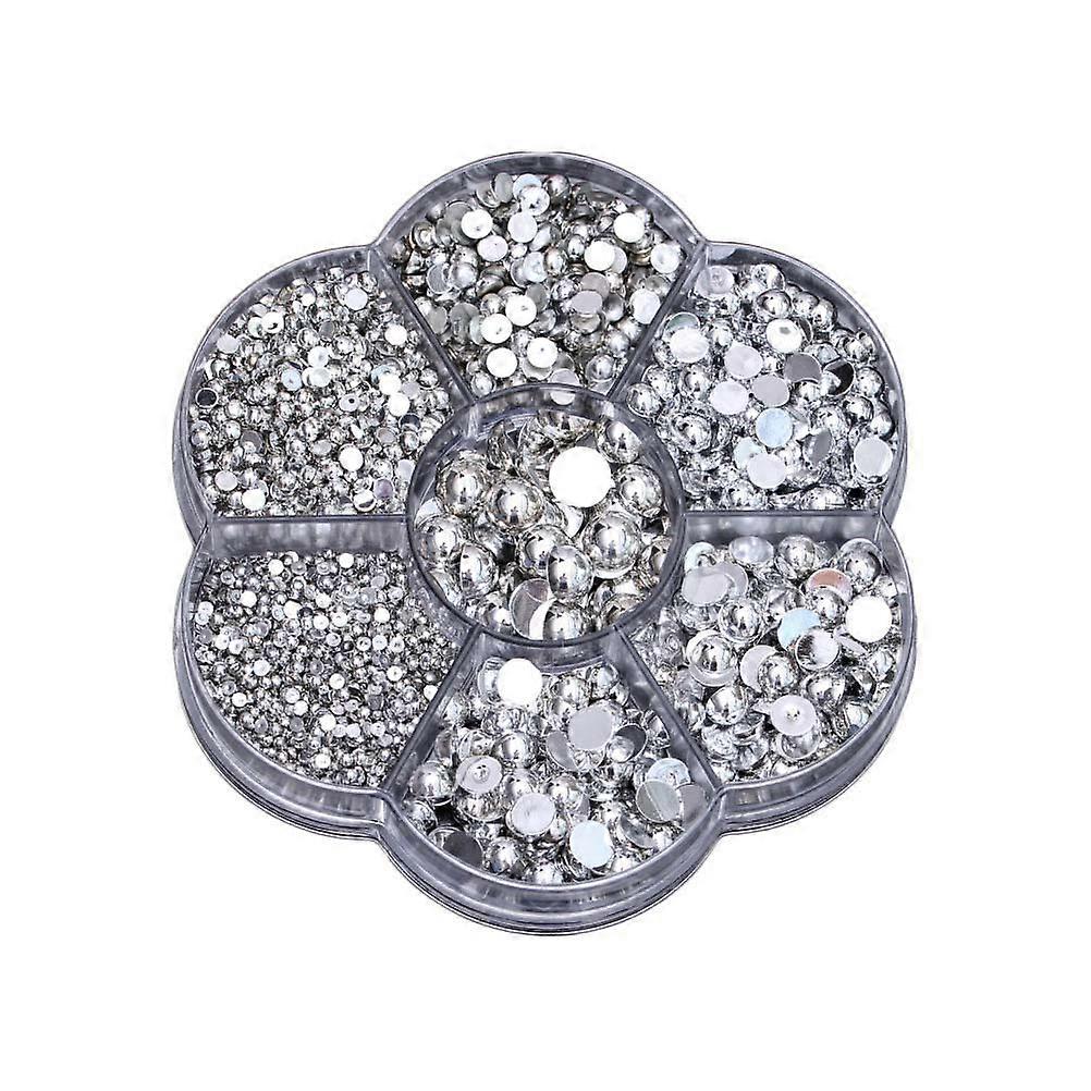 2465Pcs Plum Blossom Packaging Box Beads Set Plastic Resin Half Round Pearl Beads Kit DIY Nail Art Ornaments (Silver)