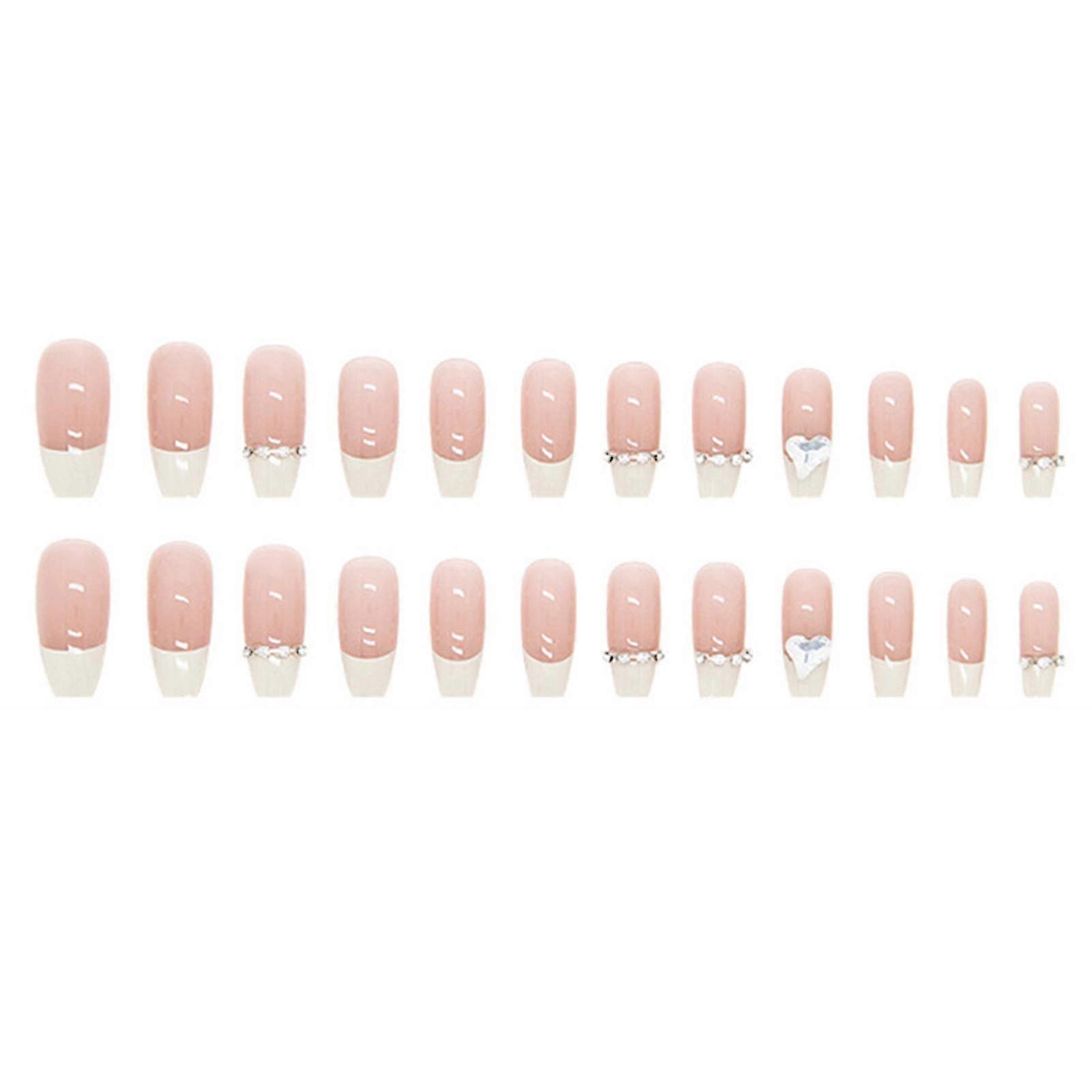 24pcs Long Press On Nail Cute Rhinestones Design Fake Nail Full Coverage Nails