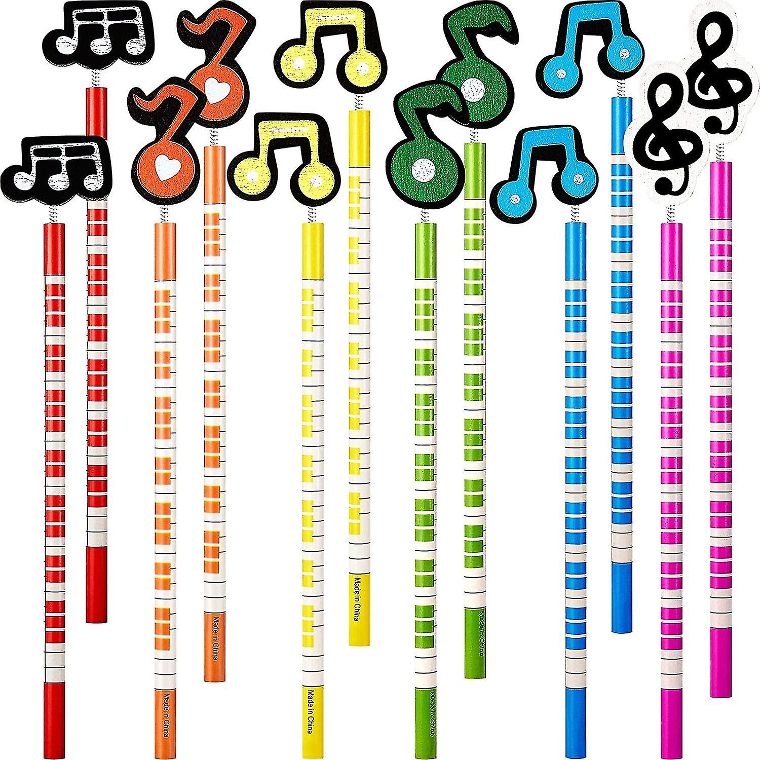 24pcs Music Notes Pencils Wooden Colorful Stripe Pencils With Wood Music Note Ornaments For School