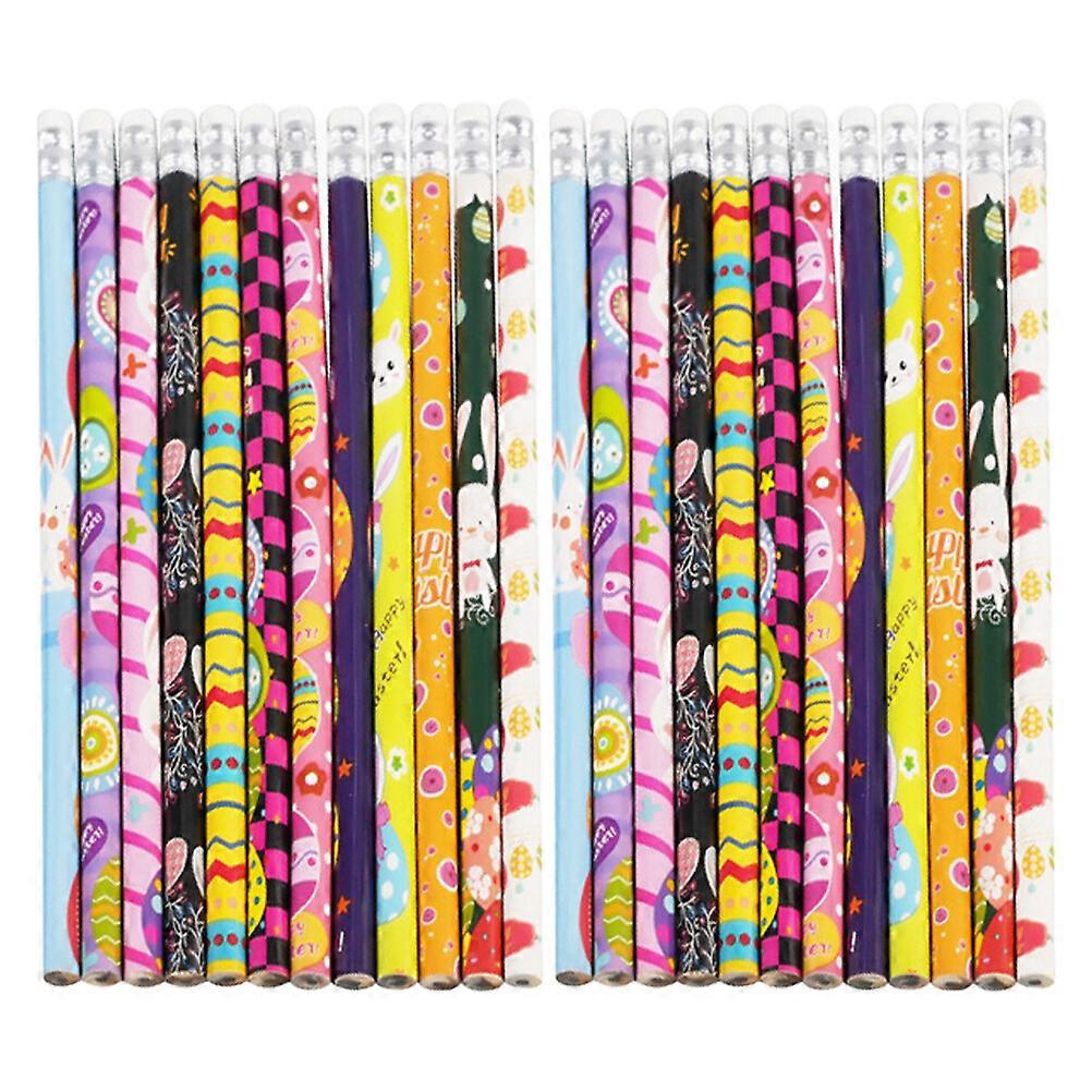 24pcs Easter Pencils with Top Eraser Portable Wood Pencils Easter Stationery Gift(Mixed Style)