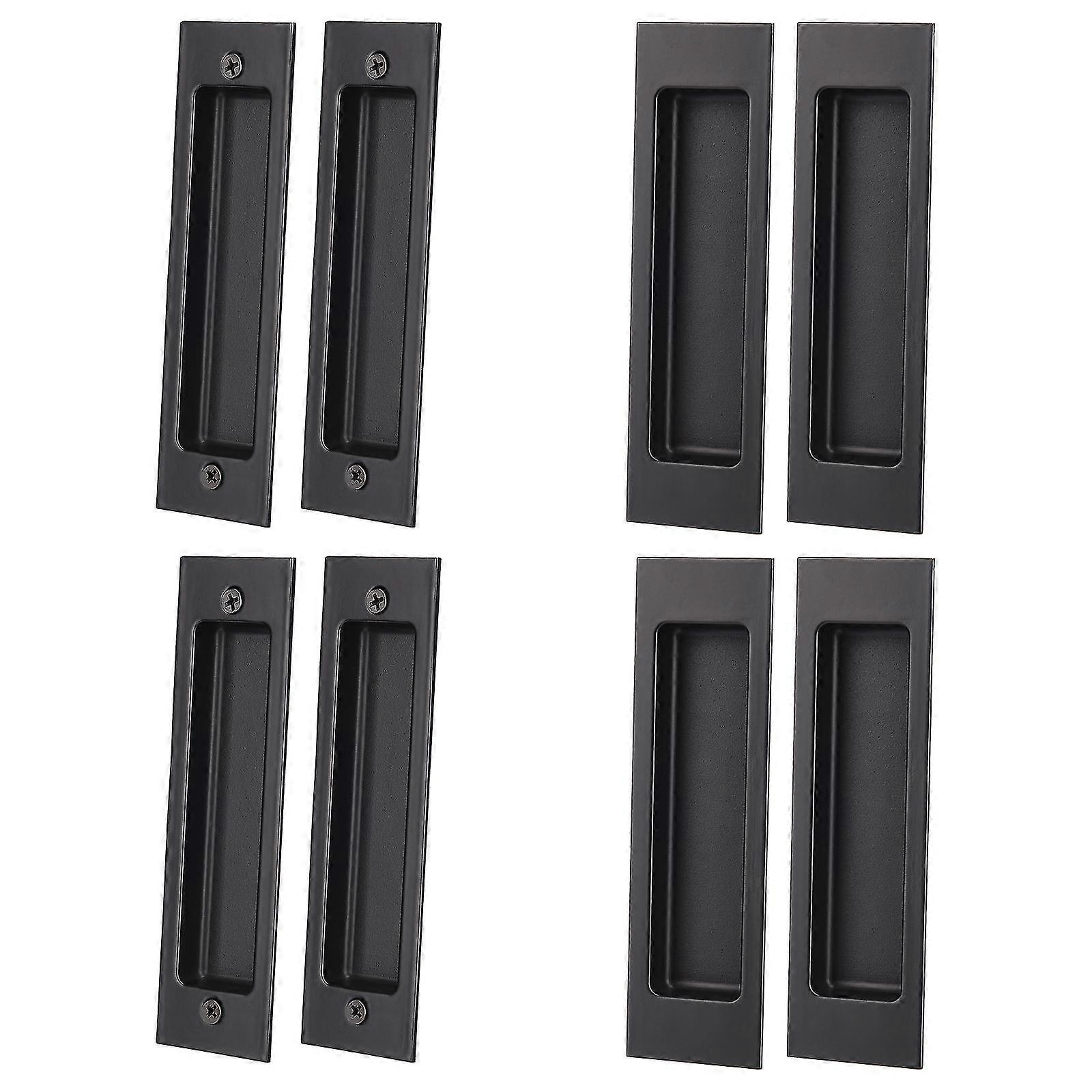 2/4pcs Running Black 6 Inch Sliding Barn Door Finger Pull Set | Heavy Duty Modern Simple Invisible Handle| With Flat Bottom Easy To Install