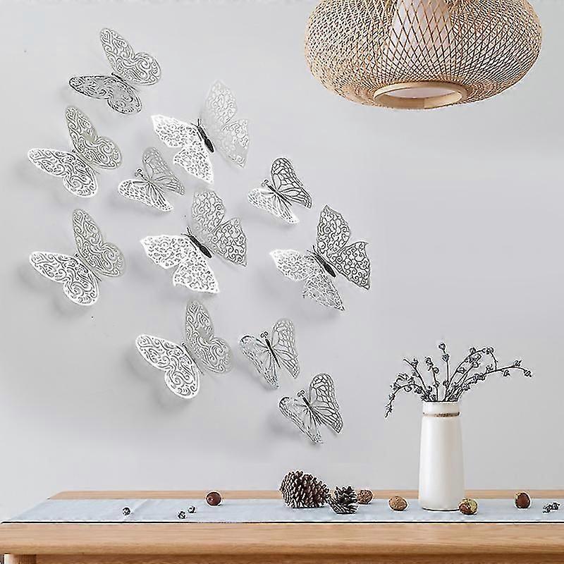 24pcs/2pack 3d Butterfly Wall Decal Diy Art Rose Gold Glitter Sticker For Kids Bedroom Living Room Home Party Decor