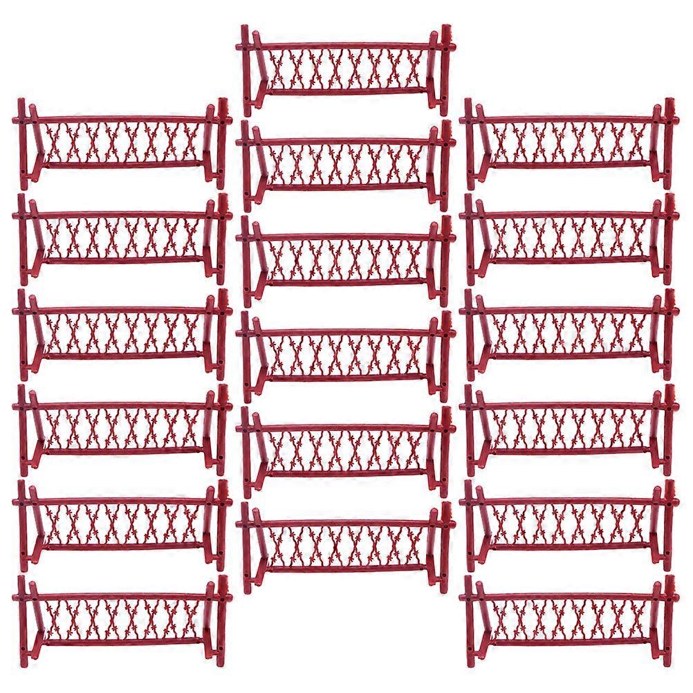 25Pcs Mini House Shape Landscape Decor Mini Fence Dark Red Plastic For