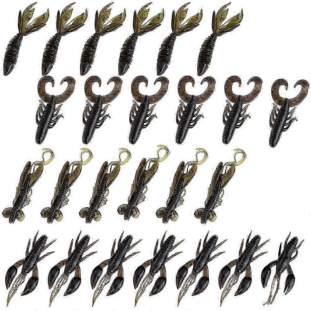 25pcs Soft Silicone Bait Worm Crawfish Shrimp Bass Pike Lure Fishing Tackle (Brown)