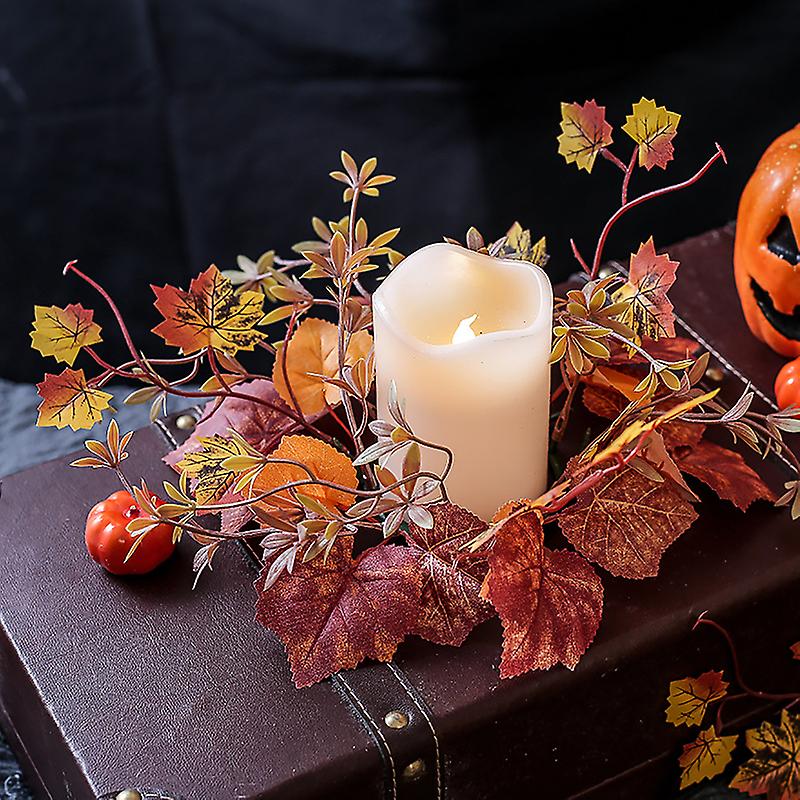 25cm Fall Wedding Candle Holder Artificial Maple Leaf Candlestick Wreath Candle