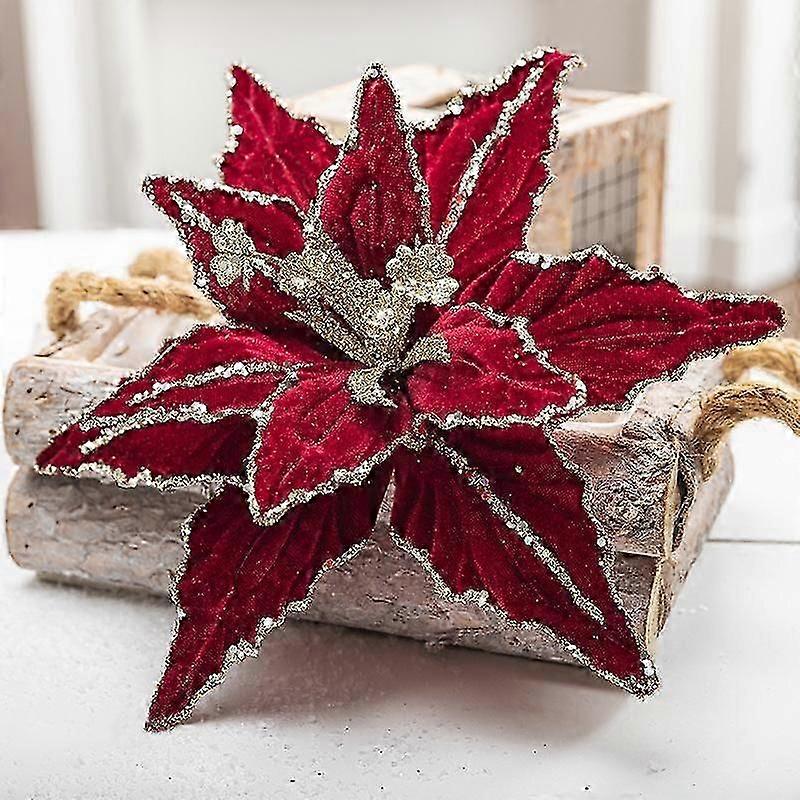 25cm 2025 New Year Party Decor Christmas Tree Artificial Flower Red White Golden