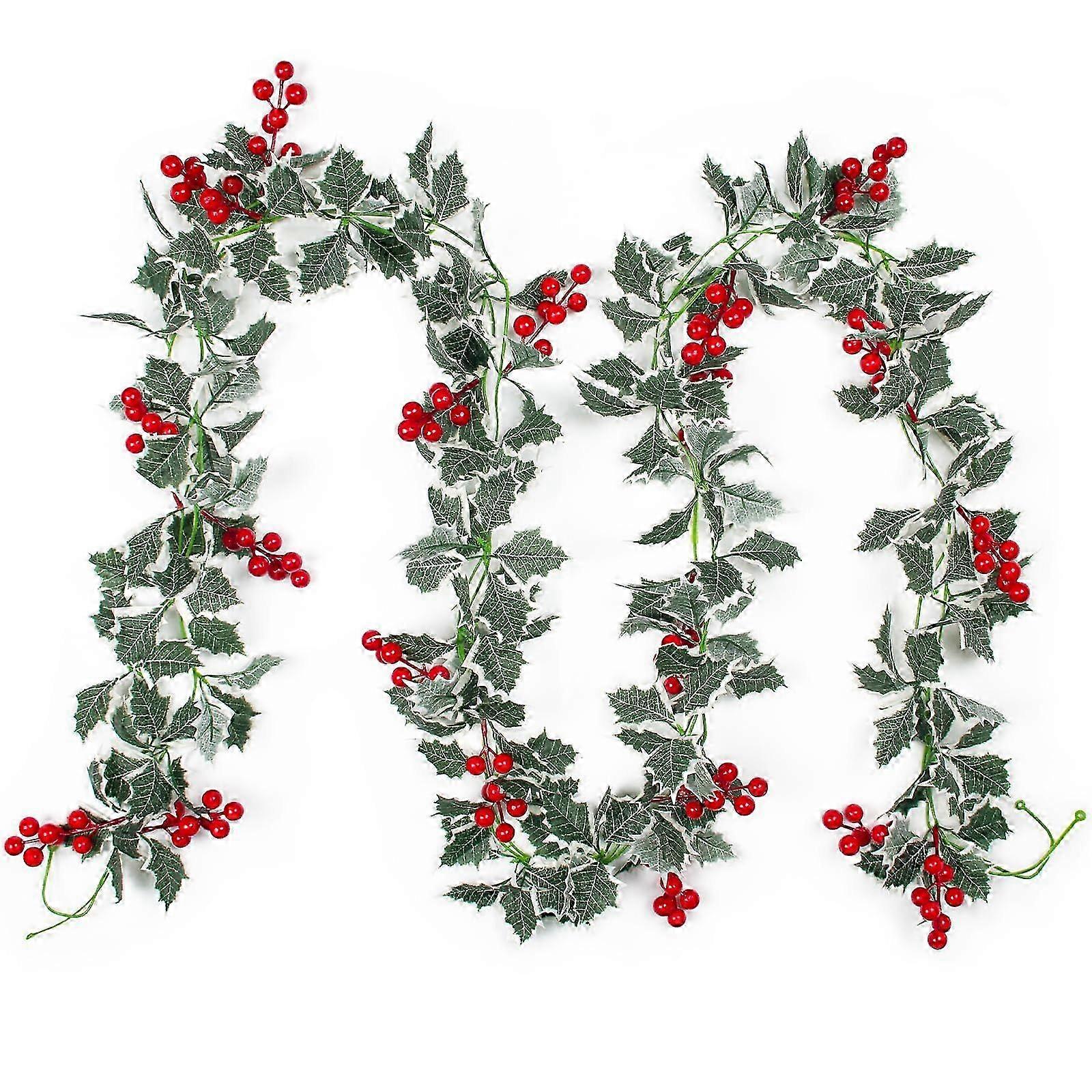 25-26 3 Pack Christmas Poinsettia Garland 25.5 Ft Artificial White Edge Green Holly Leaves Indoor Outdoor Deck Railing Decor