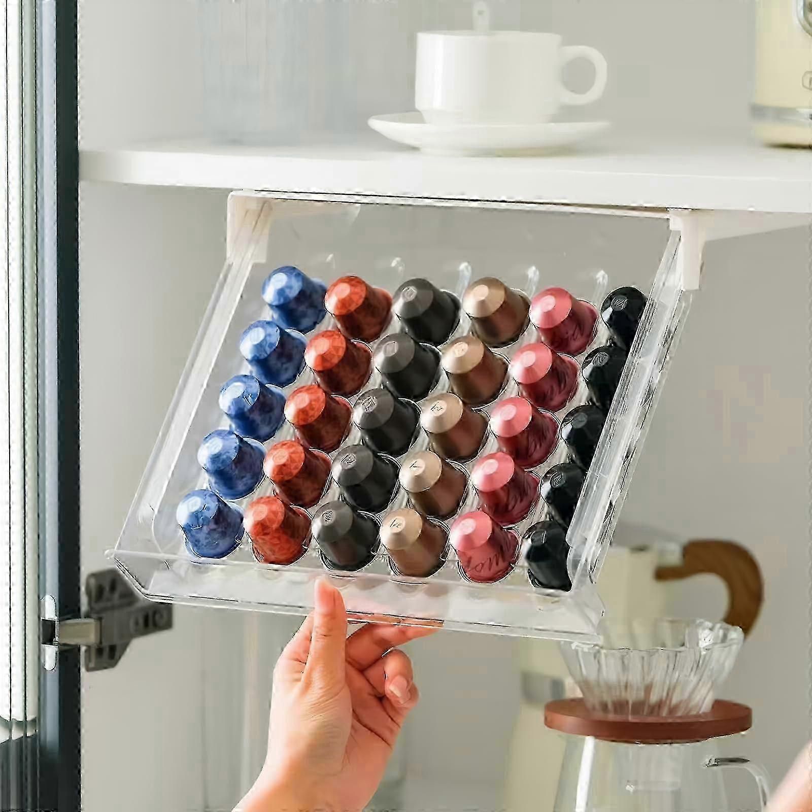 25-26 Clear Coffee Pod Capsule Drawer Organizer for Under Cabinet Espresso Pod Storage Holder 30-Capacity