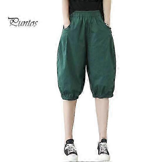 25-26 Women Summer Shorts Mid-rise Elastic Waist Knee-Length Pants Solid Color Loose Fit Short Pants Streetwear