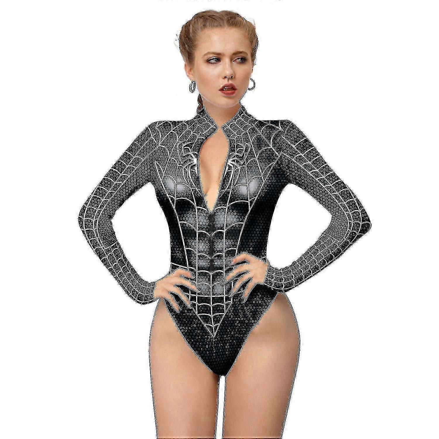 25-26 Women Spiderman Skeleton Bone Frame Leotard Bodysuit Halloween Party Fancy Dress Cosplay Costume Jnnjv