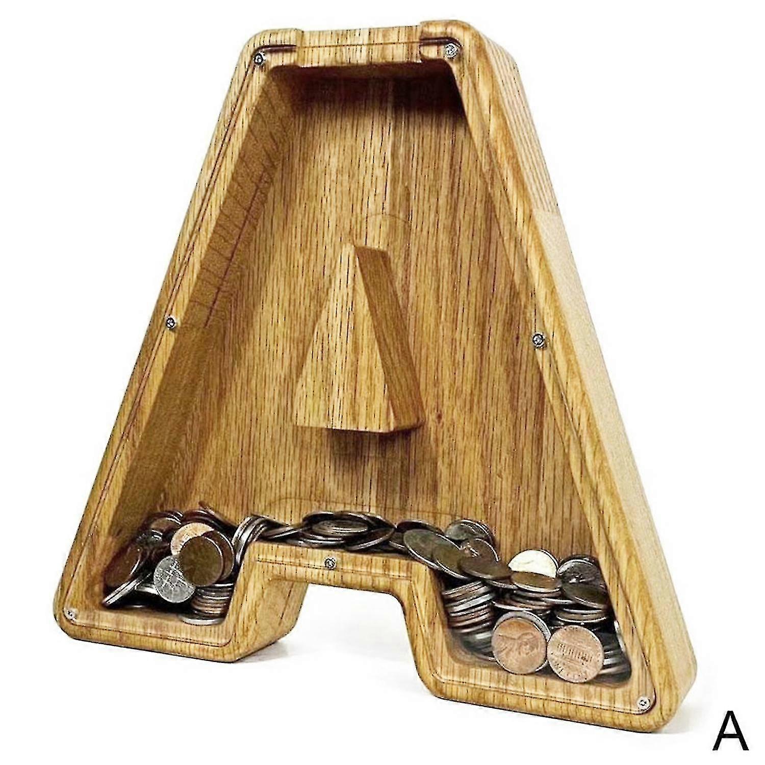 25-26 Wooden Piggy Bank Funny Letter Coin Saving Money Box Kids Adults Gift