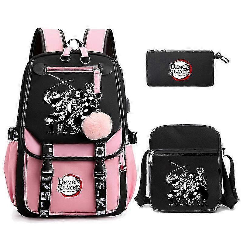 25-26 3Pcs Kamado Nezuko Demon Slayer Backpacks Set for Girls Anime School Bag Teenager Student Canvas Laptop Back Pack Women Rucksack