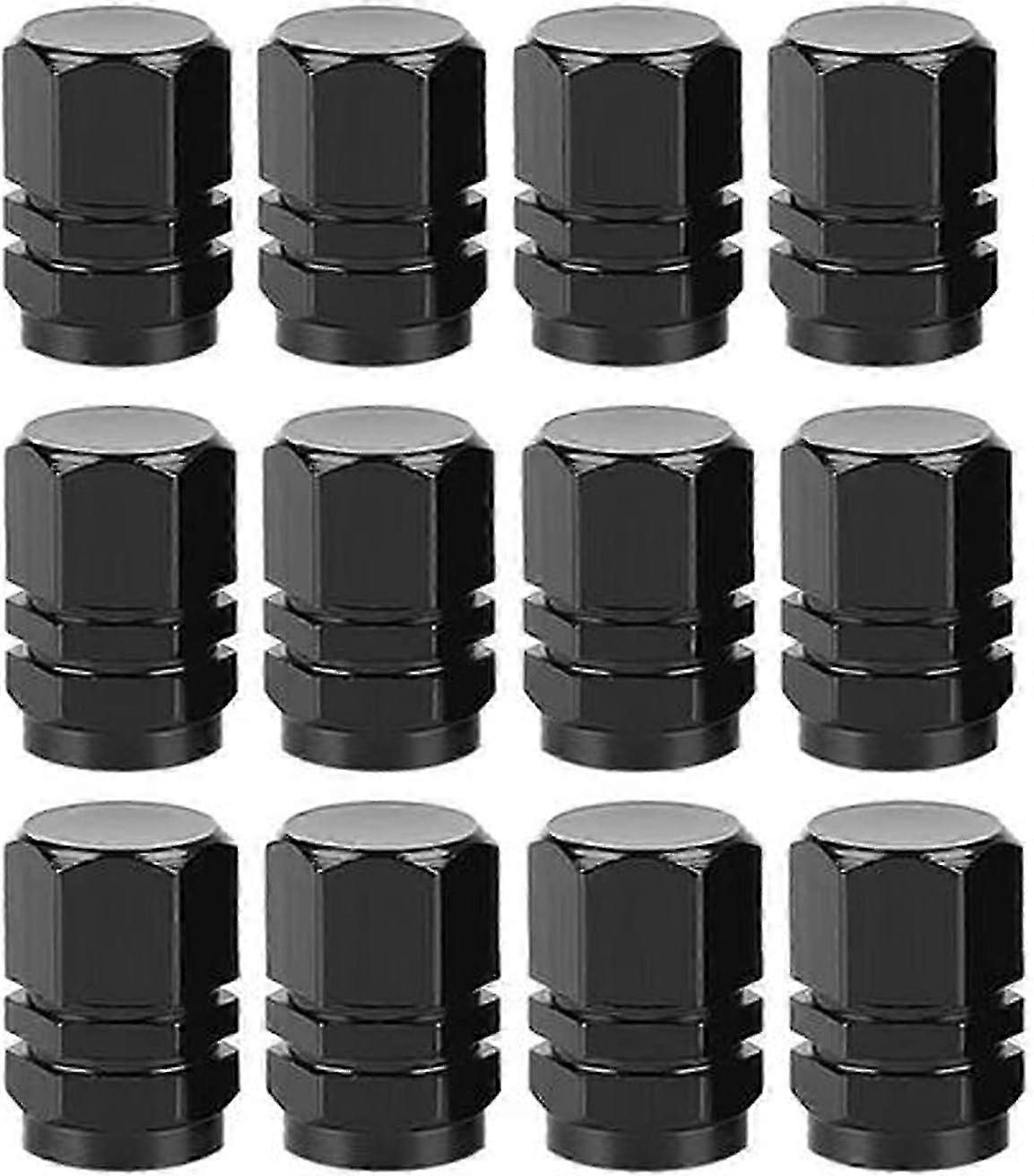 25-26 LINJOU Car Wheel Tire Valve, 12pcs Air Caps Cover, Metal Car Wheel Tire Valve Stem Caps-Black
