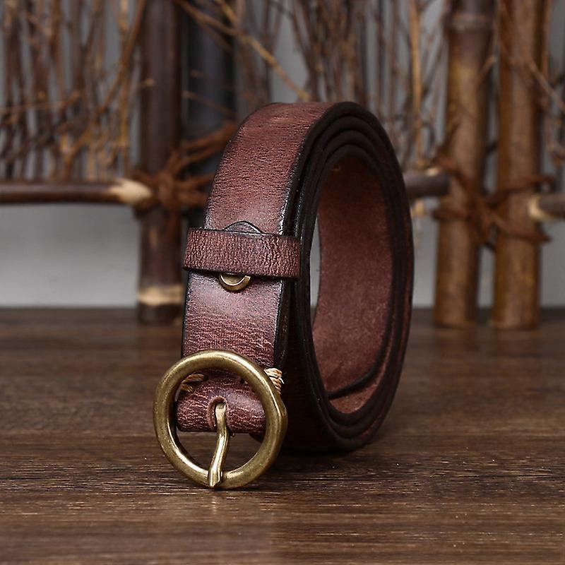 2.5cm For Leather Belts For Women Luxury Copper Round Buckle Cowskin Female Belt Simple Waist Belt For Jeans Candy Color