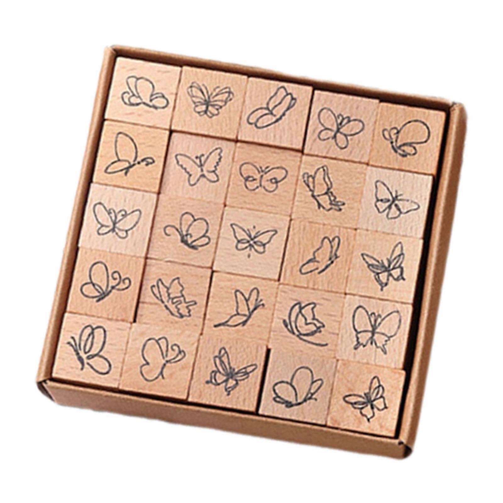 25x Mini Stamps Crafts DIY Wood Stamps for Painting Journaling Happy Planner Butterfly
