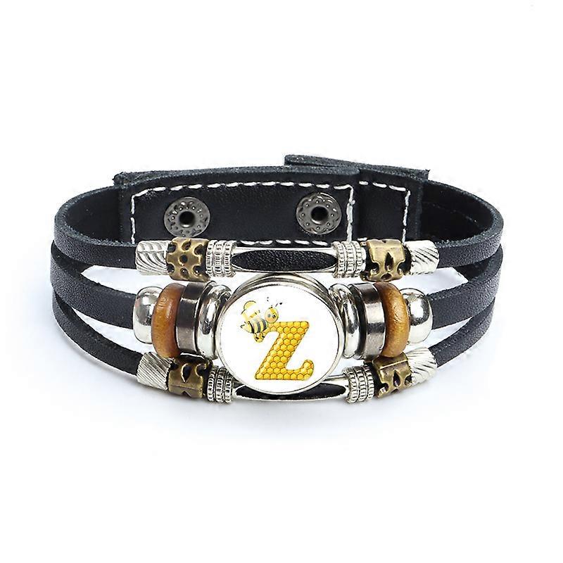 26 Initial Letters Leather Bracelet Cute Animal Bee English Alphabet Art Photo Glass Cabochon Pendant Bangles Fashion Jewelry