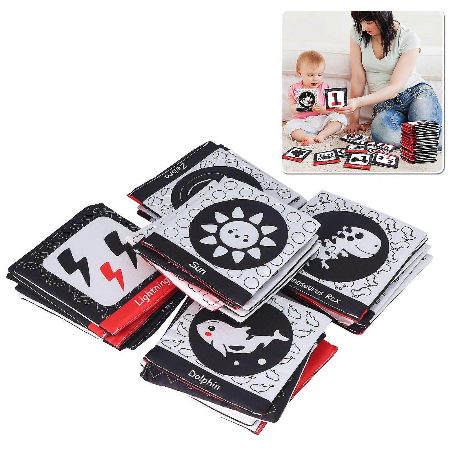 26PCS Baby Cloth Books with Tote Bag Soft Fabric Infant Puzzle Cards Early Education Toys Black White Red