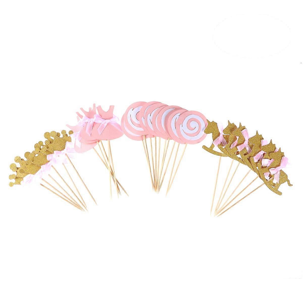 27 Pcs Pink Theme Cupcake Toppers Birthday Party Cake Picks Food Decoration Supplies for Birthday Party Crown Lollipop Horse Cloth