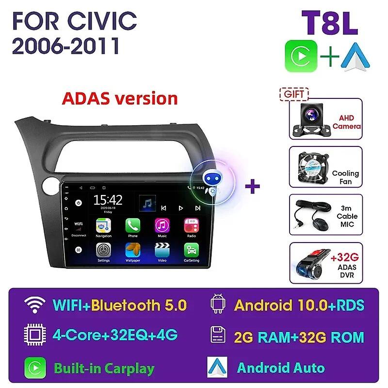 2din Android11 Car Radio Multimidia Video Player Car Stereo For Honda Civic Hatchback 2006-2011 Carplay 2 Din Dvd Head Unit