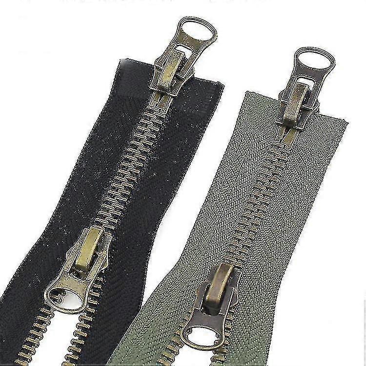 8 Antique Brass Metal Zippers Length: 70 cm Quantity: 2 Pieces, color: black+Military green metal zippers, 8 separating zippers for jackets and coats