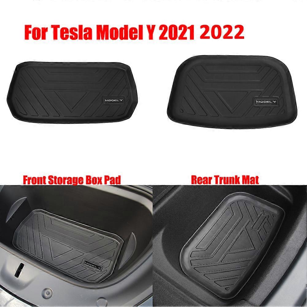 2pc Car Front & Rear Trunk Mat Storage Box Pad For Tesla Model Y Waterproof Pads Cargo Liner Trunk Tray Floor Mat