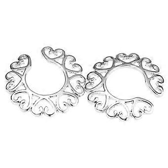 2pcs Love Heart Stainless Steel Floral Clip On Mamilo Ring Adjustable Gauge