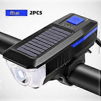 2pcs Solar Bike Light Front Flashlight Solar USB Rechargeable Light Lamp Waterproof
