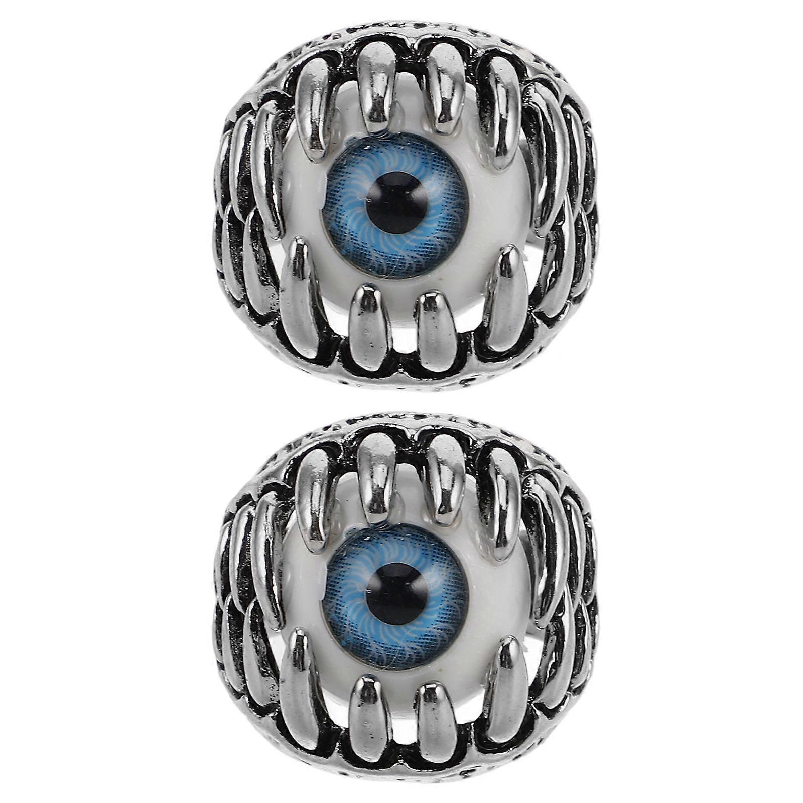 2pcs Men's Dragon Claw Evil Devil Skull Eyeball Ring Gothic Biker Unique Eyes For Halloween (Blue) 8