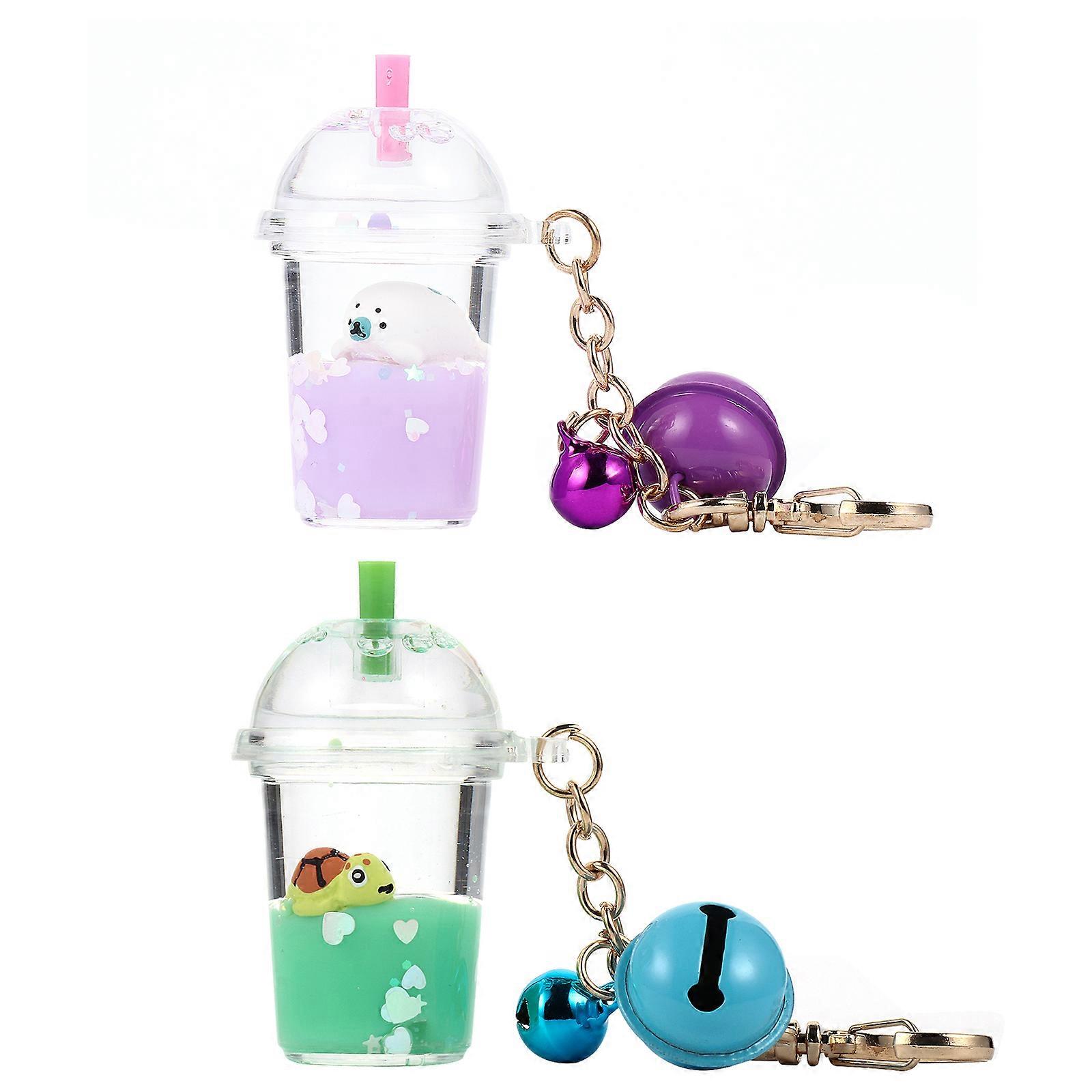 2pcs Lovely Milk Bottle Bell Keychains Keyrings Bag Ornaments Bag Pendants
