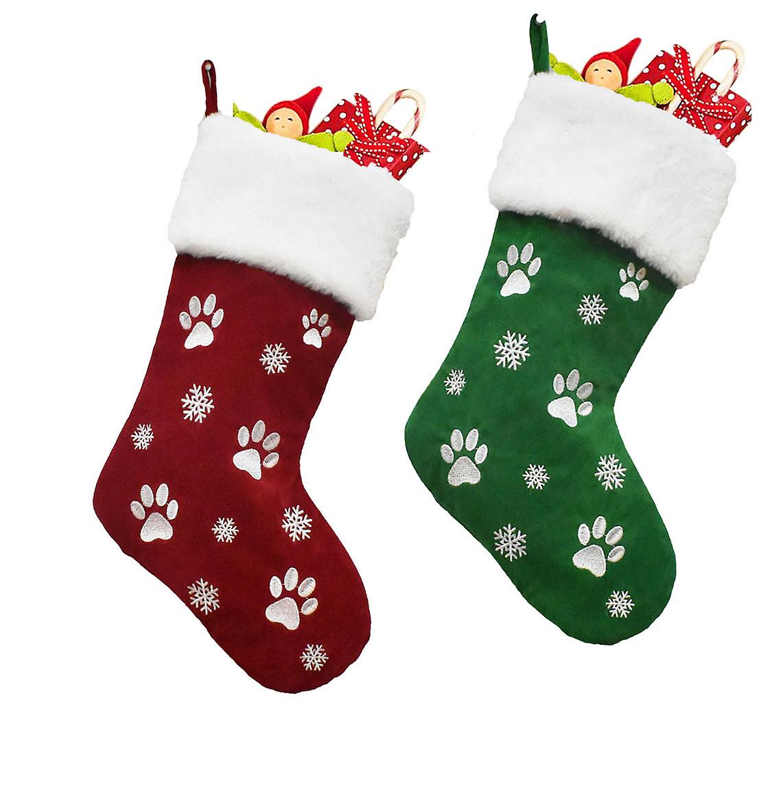 2pcs Large Christmas Stockings 8.7 X 18.1inch Dog Paw Print Snowflake Pattern Hanging Stockings Red Green Christmas Decorations Pxcl