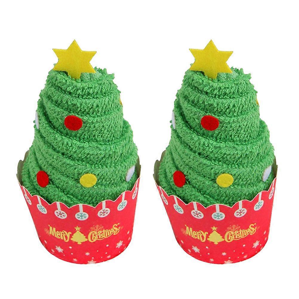 2PCS Christmas Towels Creative Cotton Bath Towel Cake Modelling Hand Towel Washcloth Xmas Gift (Christmas Tree)
