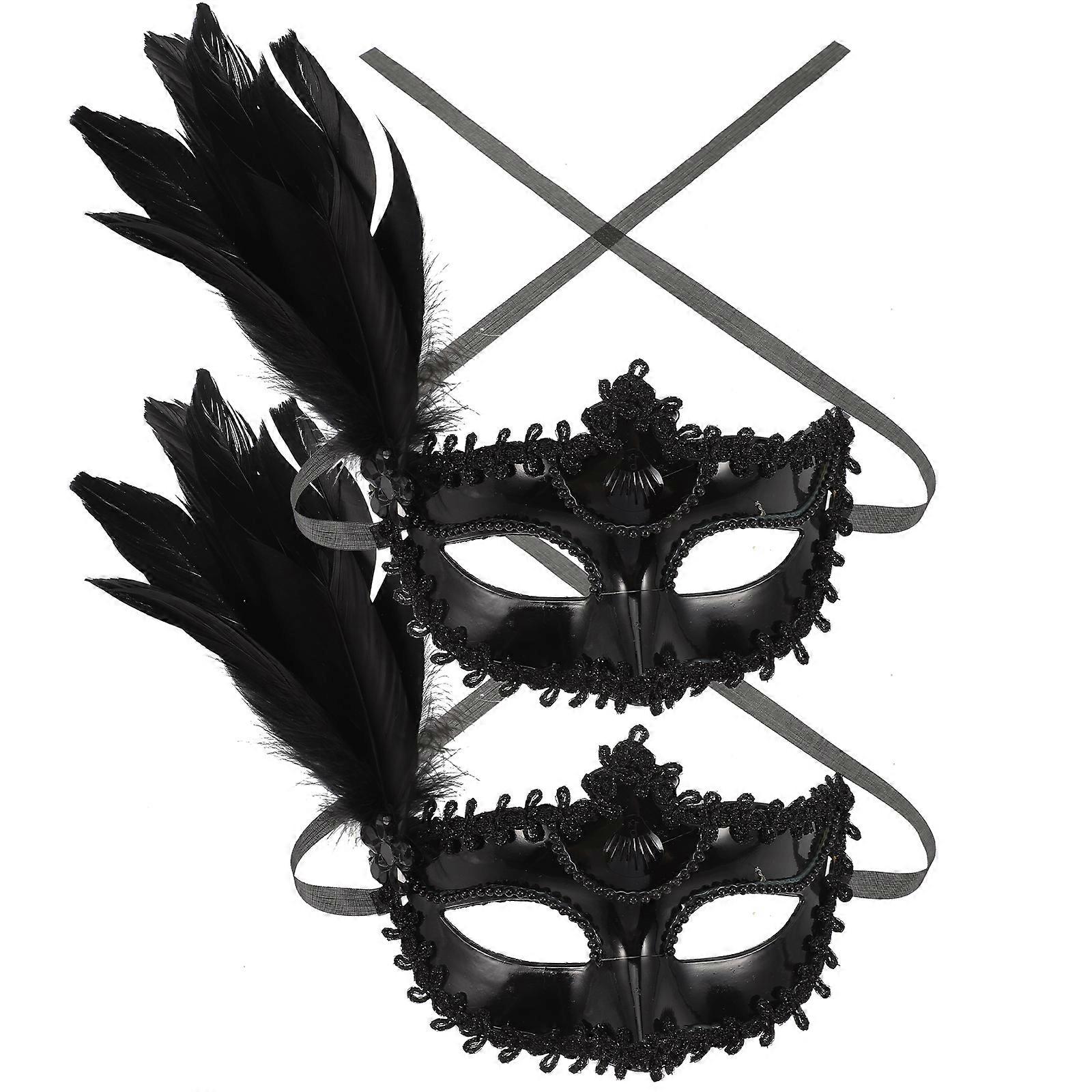 2pcs Carnival Party Masquerade Mask Delicate Plume Cosplay Mask Women Masquerade Mask Black